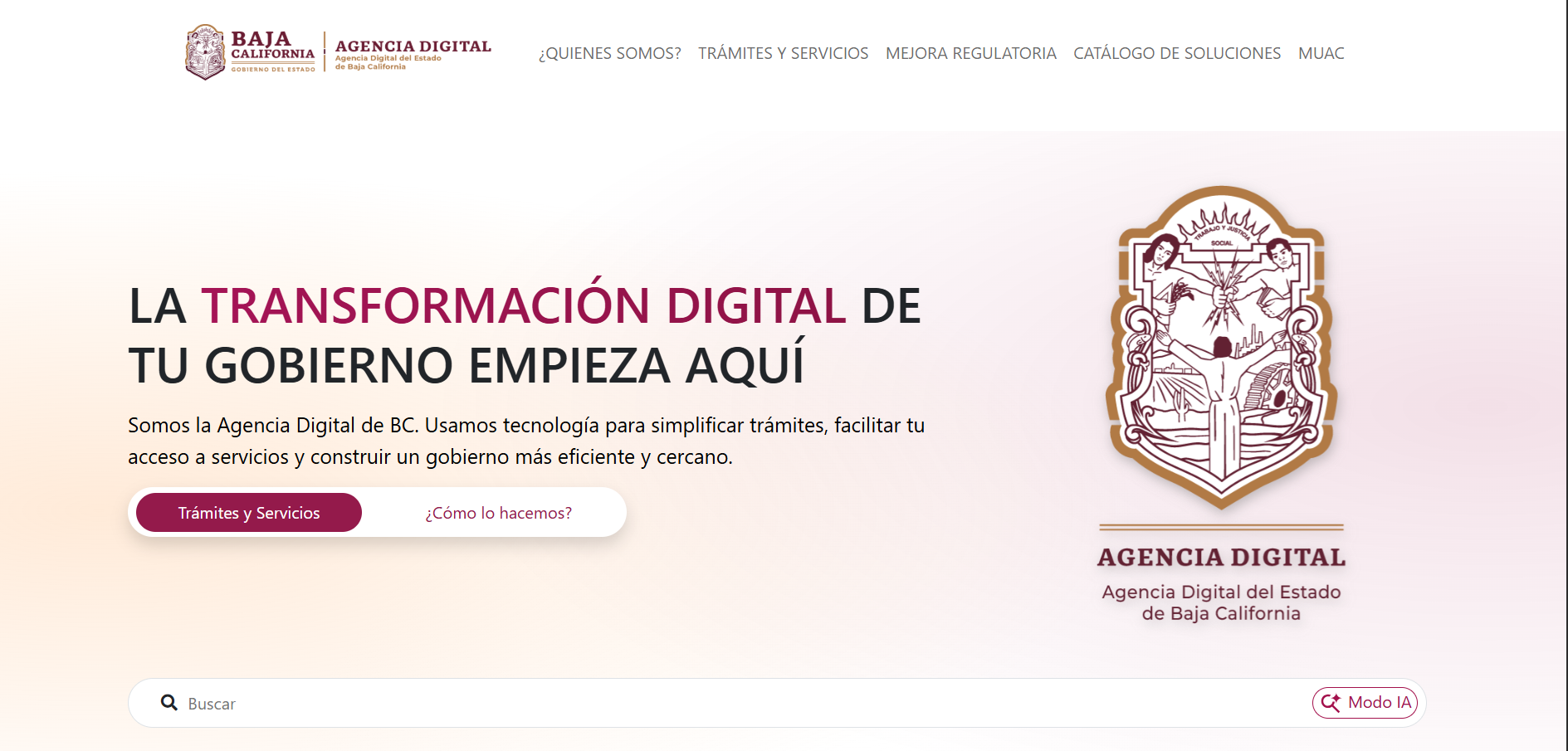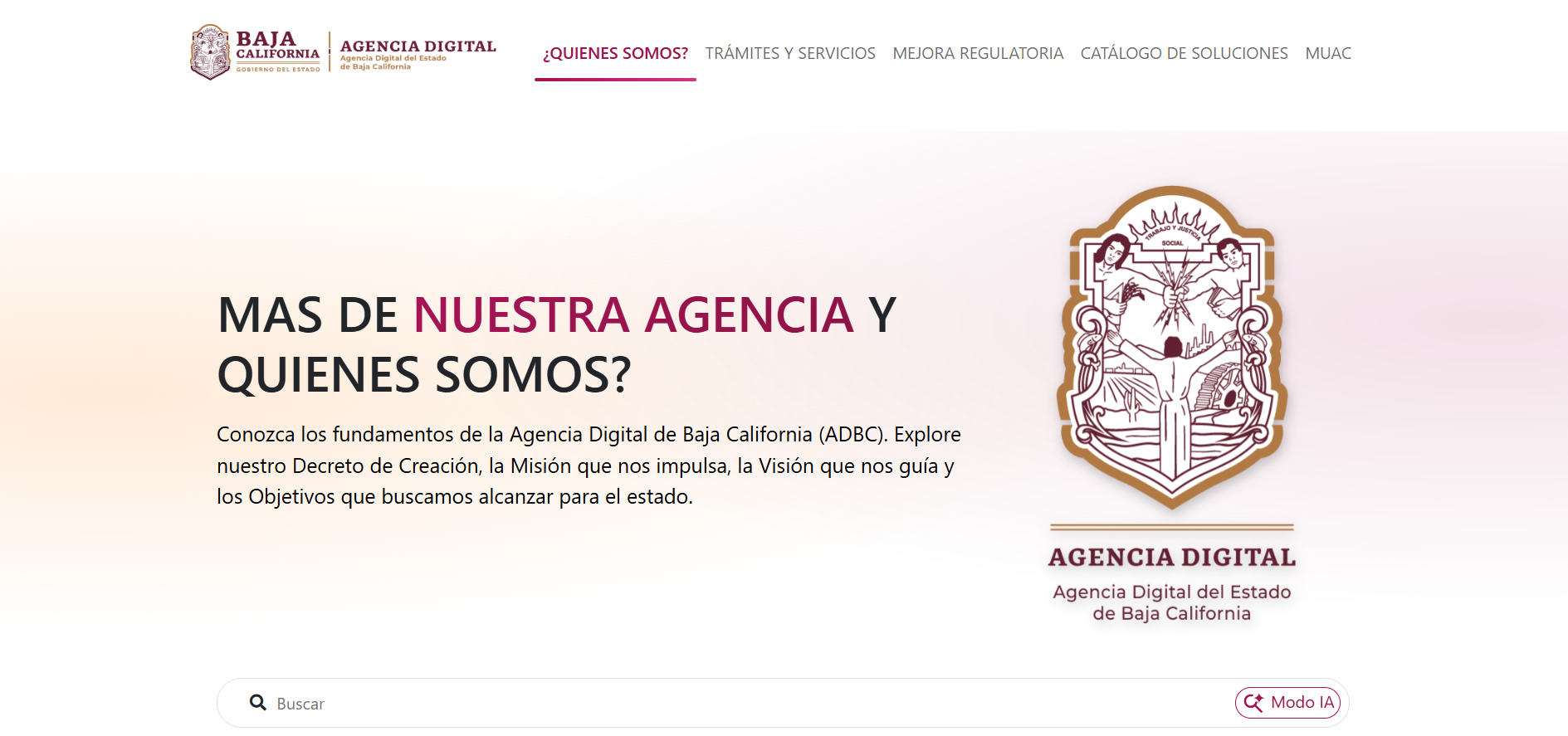 Información Institucional: Proporciona datos sobre la misión, visión, estructura y equipo de la Agencia Digital de Baja California.